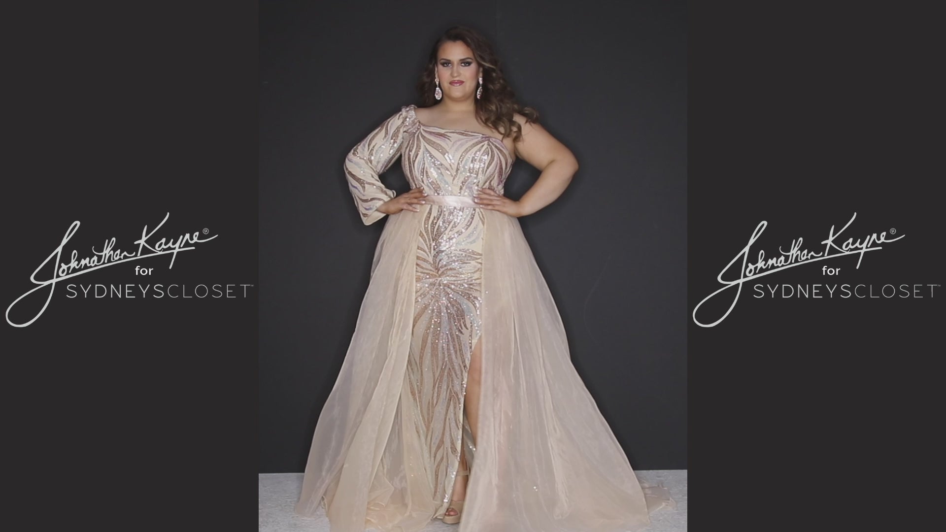Blow the roof off of for your fun fashion look on the pageant stage or at Prom 2025 in this sultry one-shoulder gown. The high slit will show off your great legs, while the iridescent organza overskirt adds drama. Cascading blue, gold and mocha sequins create a unique pattern on a champagne stretch knit lining. Semi-lined mini skirt, and full of sass, this dress will have you ready for a night of fun!