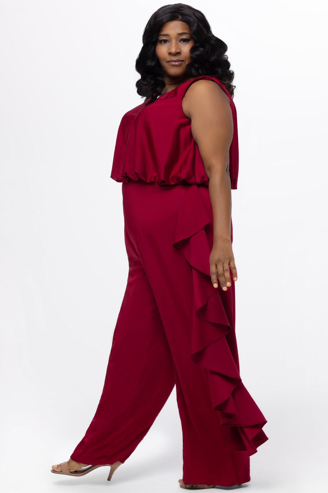 Q: Will the blouson top on a plus-size formal jumpsuit flatter my curves?