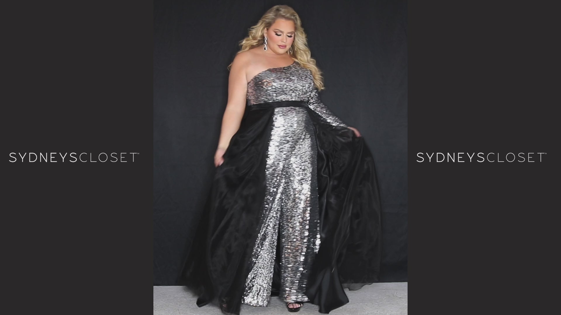 Live your disco queen fantasy and shine like no other in this Platinum one-shoulder jumpsuit! From the fitted one sleeve neckline to the wide leg pants with pockets, this plus size sequin jumpsuit makes a statement from head to toe. The sequins on mesh fabrics and fit allows your curves to be hugged and for your natural waistline to be highlighted - all while still being able to dance your night away!