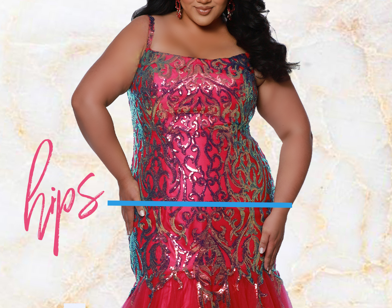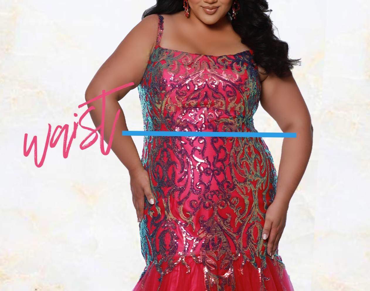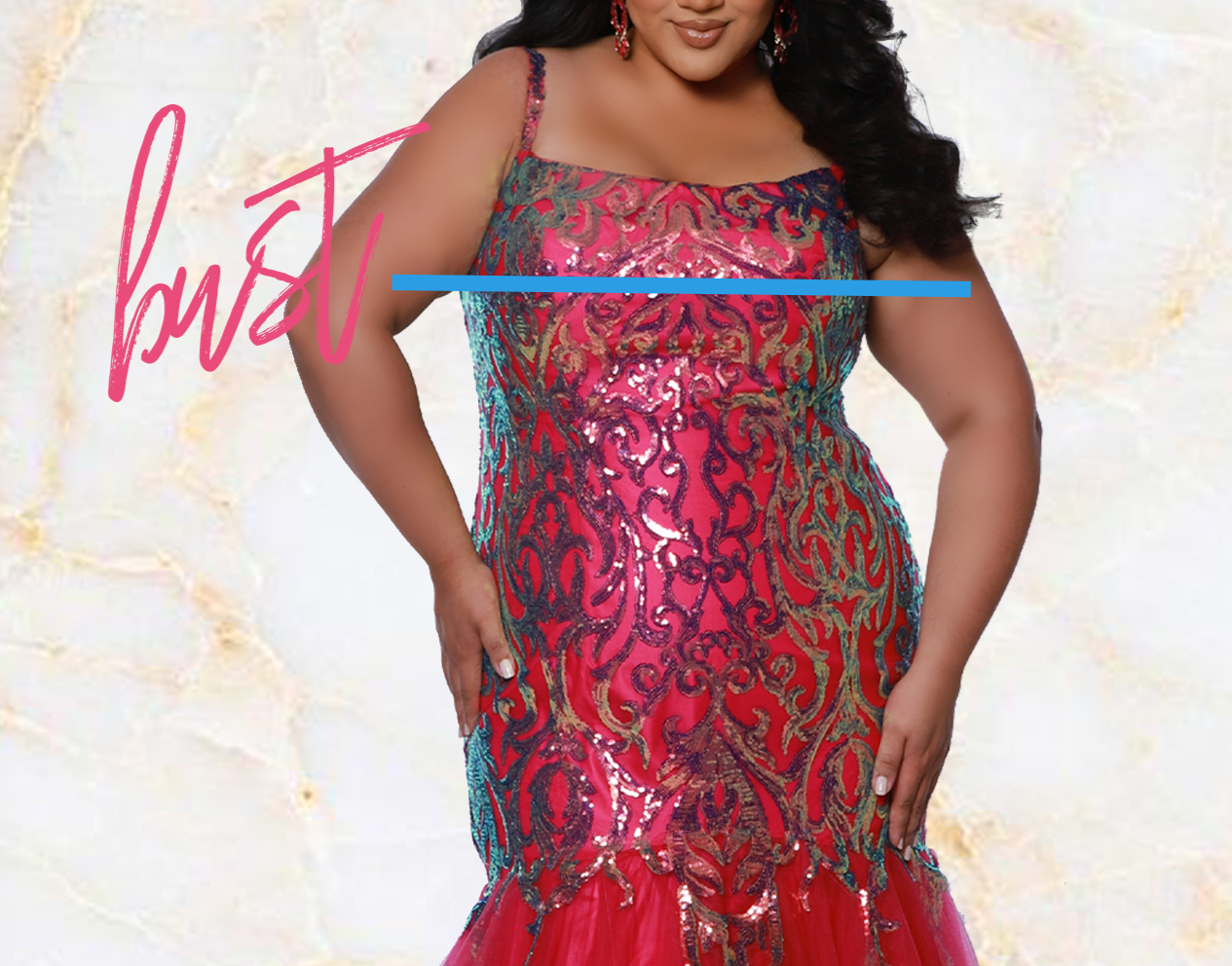 Compare your measurements with the bust, waist and hips measurements on the Sydney's Closet size chart. The dress must be large enough to fit you in the bust, waist and hips.