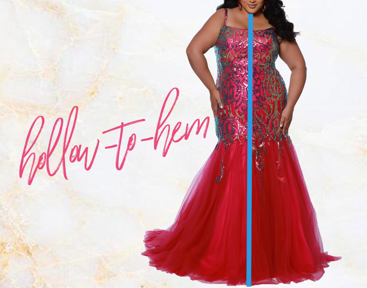 What is "hollow-to-hem"? It's the length from the indentation in the front of your neck to the edge of the hem on the skirt of the dress. It will tell you how long the dress will be on your body.