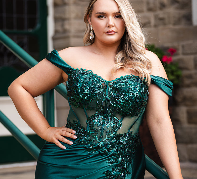 plus-size prom frocks crafted to flatter every curve.