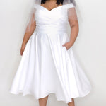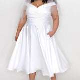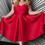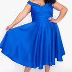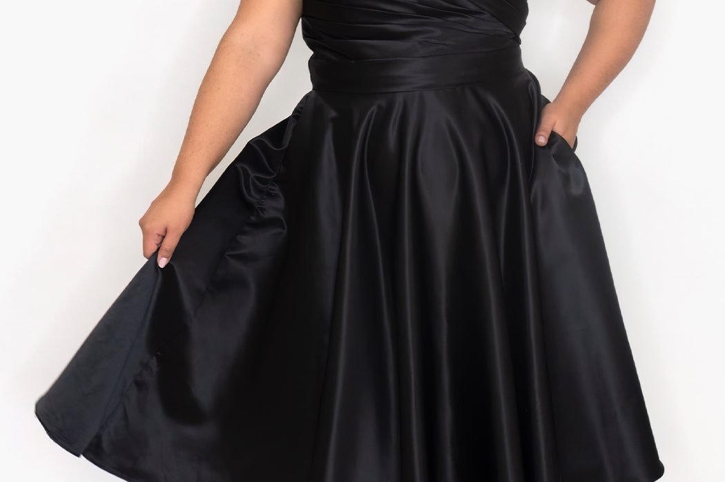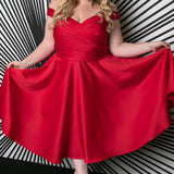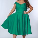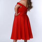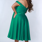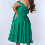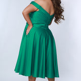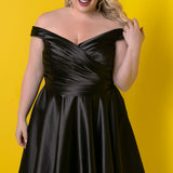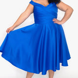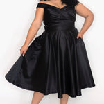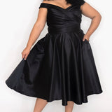 Look sophisticated and chic wearing this off-the-shoulder dress to any special occasion whether the invites is lunch, drinks or dinner and dancing. Sleek satin fabric features of subtle sheen. The tea-length A-line skirt hints at a retro vibe. Striking in black for a timeless look or go for ruby or emerald., two jewel tones trending now. You can be confident this is an off the shoulder posh party dress you can wear again and again and always get compliments.