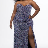 This dazzling sequin plus-size evening gown isn’t just a formal dress—it’s a main character moment. Slip into Style SC7420 and let those multi-tonal sequins stitched on velvet catch every flicker of light (and every eye in the room). The strapless sweetheart neckline? Pure curve-celebrating magic. The body-skimming slim fit of the luxe stretch velvet covered in sequins? A confidence boost stitched into every seam. And that thigh-high slit? Let’s just say, the shoes you’ve been dying to show off finally get their spotlight. Perfect for prom, galas, black-tie weddings and balls, this gown is your go-to when “casual” is not in the dress code. Bold and beautiful in Galaxy, as shown, this evening gown also lets you look stunning in Cotton CandyPeacock or Royal.