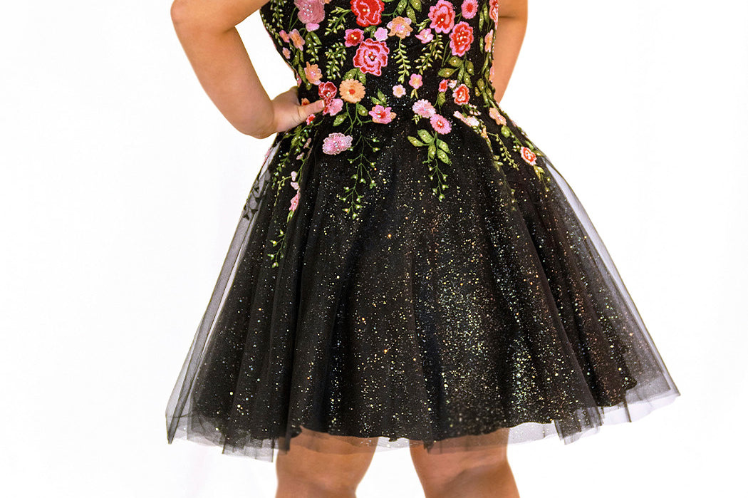 Get ready to bloom, babe. This plus-size embroidered party dress isn’t just a dress—it’s a whole vibe. Bursting with multi-color sequin floral appliqués, the bodice and skirt bring big energy against a bold black tulle backdrop. Whether you’re headed to Homecoming 2025, a semi-formal soirée, or any night that calls for sparkle and sass, this dress brings the drama—in the best way. The florals shimmer, the tulle flutters, and you? You steal the spotlight.