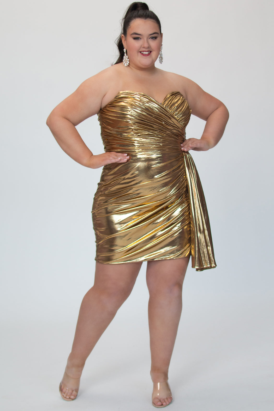 Q: I'm a curvy woman. Can I wear a gold and short fitted dress to a fancy wedding?